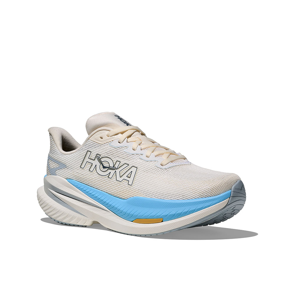 Mach X 3 är löparskon för användare som vill springa snabbare på väg, från intervaller till tempopass och daglig träning. Plattan i Pebax och en PEBA-toppad dubbeldensitetsmellansula ger explosiv respons, medan warp knit-ovandel, förfinad krage och mjukare plös håller foten sval. MetaRocker driver steget.