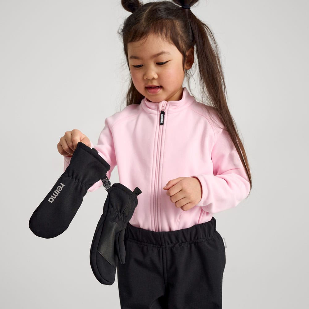 Reima Osaten är ett par sköna vantar i softshell som är flexibla och har fin andningsförmåga. Barn älskar materialet softshell från Reima eftersom det är mycket bekvämt, lätt och stretchigt. Materialet är slitstarkt och håller väta och smuts borta samtidigt som det andas och är mycket töjbart. Greppytan i handflatan är utformad för att ge gott grepp vid lek och stoj. På insidan finns ett foder i mjukborstad polyester. Som bonus går vantarna att använda tillsammans med pekskärm också! Finns i storlekar som passar från 1 till 14 år.