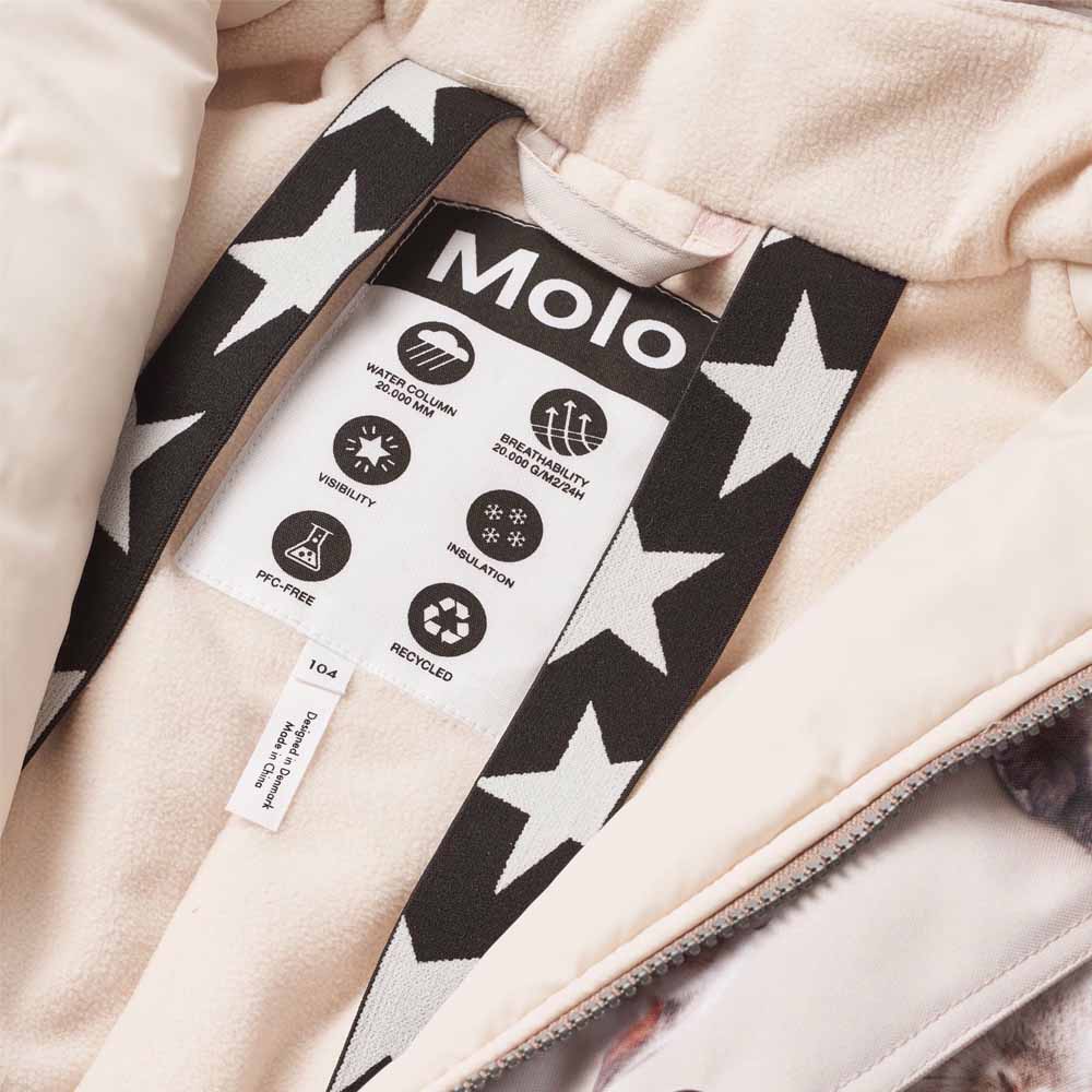 Molo Polaris Fur vinteroverall är idealisk för aktiva barn och ungdomar under kalla vintrar. Den tål temperaturer ner till -25°C, har väldigt god andningsförmåga och en vattenpelare på 20 000 mm. Tillverkad med återvunnen polyester och nylon för att vara minsta miljöpåverkan. Polaris fur har också en snygg fuskpäls som skyddar mot kalla vindar.