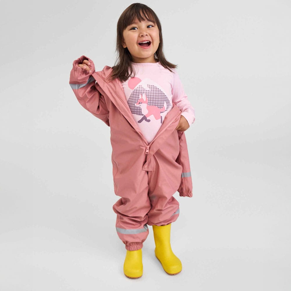 Reima Rapakko fodrad regnoverall är idealisk för äventyrslystna barn i kallt regn och slask. Dess lätta isolering och helt vattentäta material håller små upptäckare både torra och varma. Med praktiska funktioner som avtagbar huva, elastiska ärmslut och reflekterande detaljer är denna overall en trygg och funktionell följeslagare för lek i alla väderlekar.