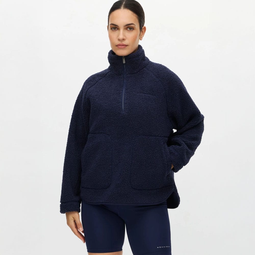 Röhnisch Cloud Pile Anorak passar dig som söker ett pålitligt mellanlager för kyliga dagar. Idealisk för lager-på-lager under friluftsaktiviteter. Praktiska fickor och halv dragkedja ger både stil och funktion. Tillverkad av 100% återvunnen polyester för ett hållbart val. Modellen är 173 cm och bär storlek S.