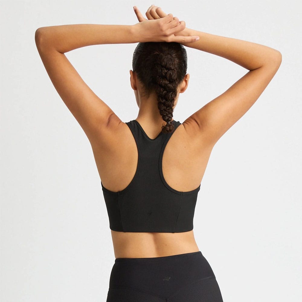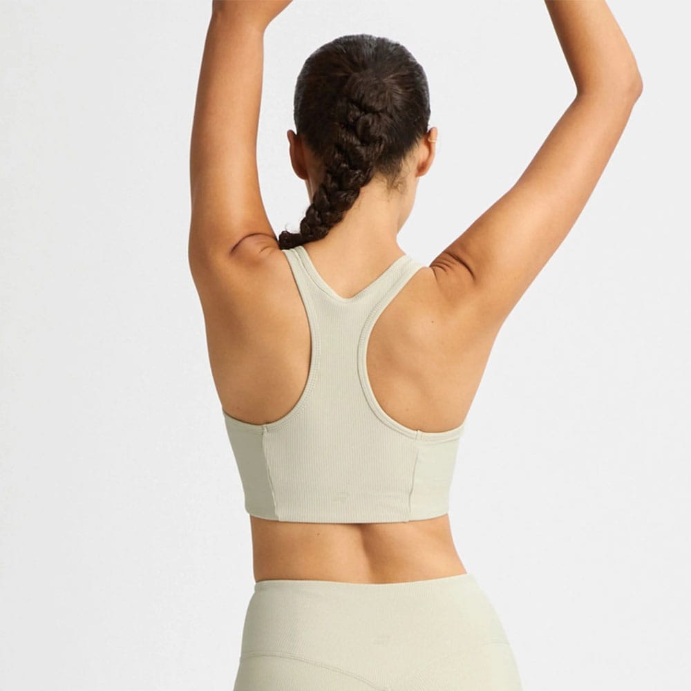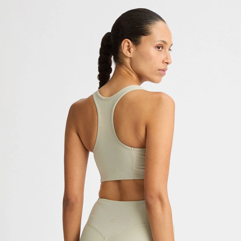 Ribbed R Sportsbra är det självklara valet för miljömedvetna kvinnor som söker komfort och stöd under medelintensiva träningspass. Tillverkad av 78 % återvunnen polyester erbjuder den mjuka, ribbade strukturen och brottarryggen optimal rörelsefrihet. Med urtagbar vaddering ger den anpassningsbart stöd, perfekt för gymmet eller yogan.