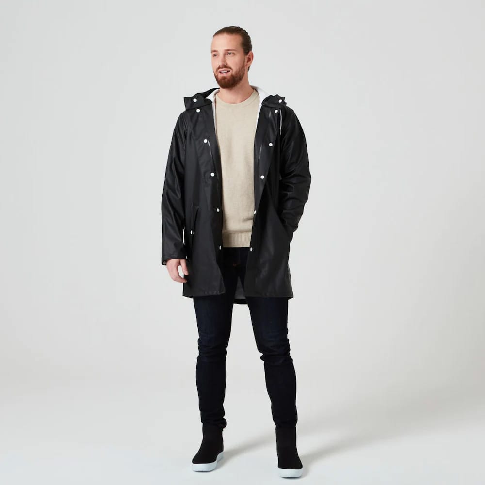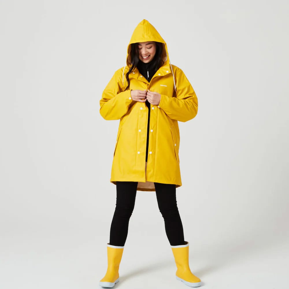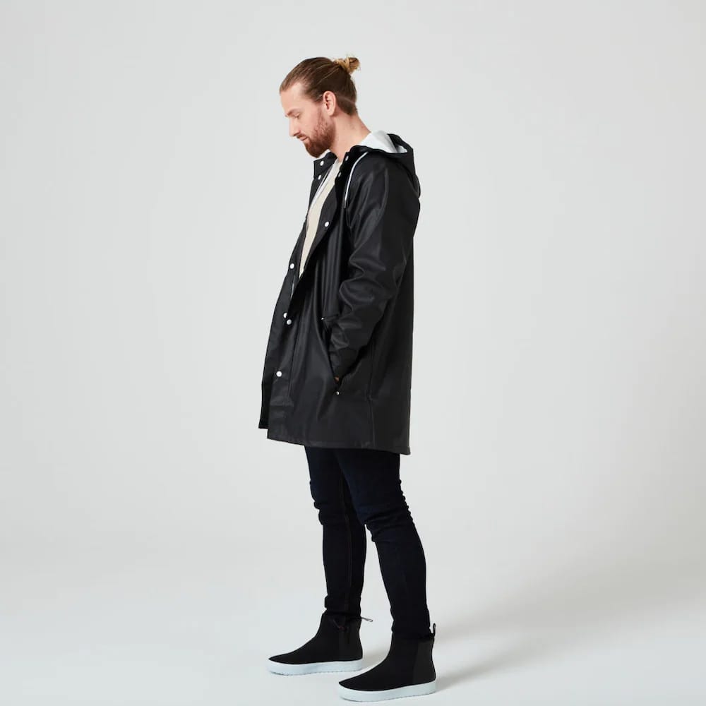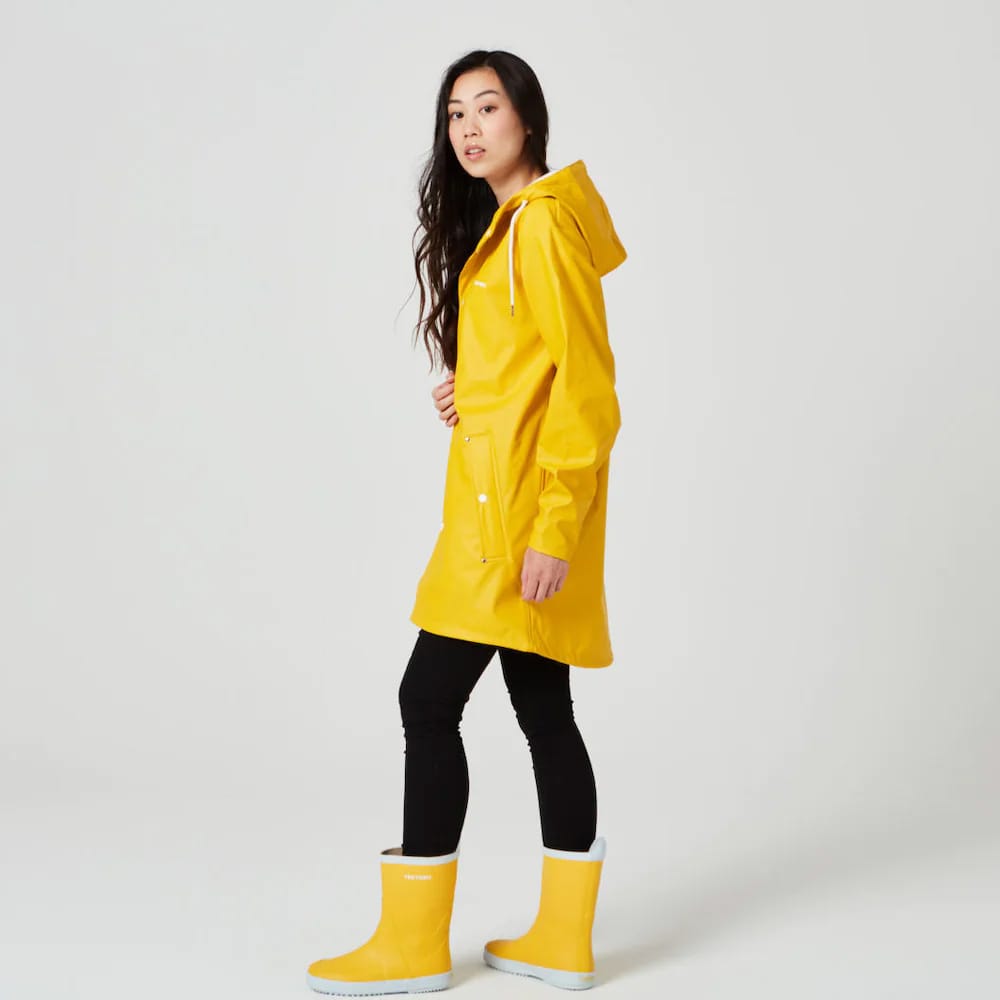 Tretorn Wings Rainjacket är inte bara ett klassiskt plagg, det är ikoniskt. Den långa regnjackan är ett funktionsplagg som ses på både män och kvinnor, i alla sammanhang. Den snygg nog att passa för promenader i staden och robust nog att stå emot naturens krafter på skogspromenaden. Regnjackan har värmesvetsade sömmar, justerbar dragsko i huvan och tryckknappar som stänger fickorna och förminskar ärmslutet. För dam rekommenderas att gå ner en storlek, medan herrar rekommenderas att välja sin vanliga storlek.
