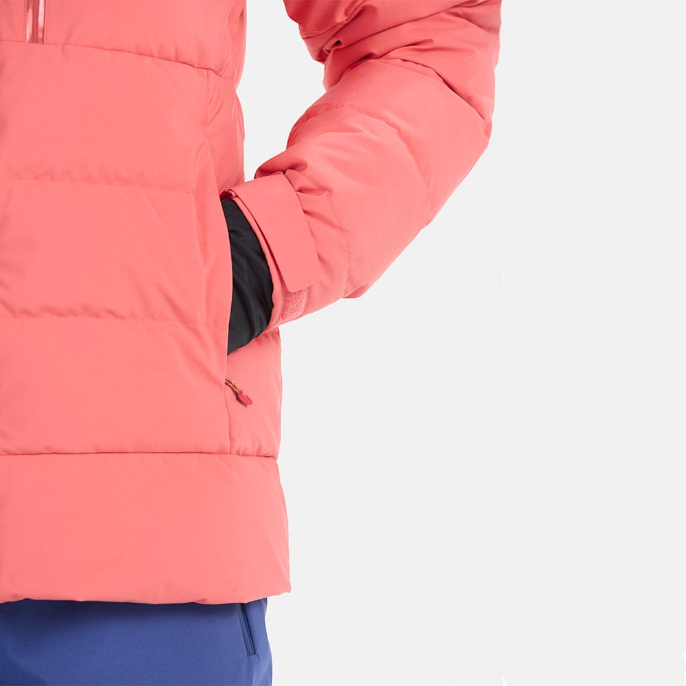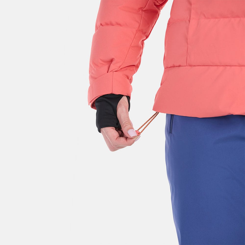 Oavsett om du skottar, leker i snön eller kör offpist så vill du ju helst hålla snön på rimligt avstånd från din hud. Vid handlederna har Marmot Wm’s Slingshot skidjacka kardborreband som du sluter till med. Detta fungerar som ett fint snölås.