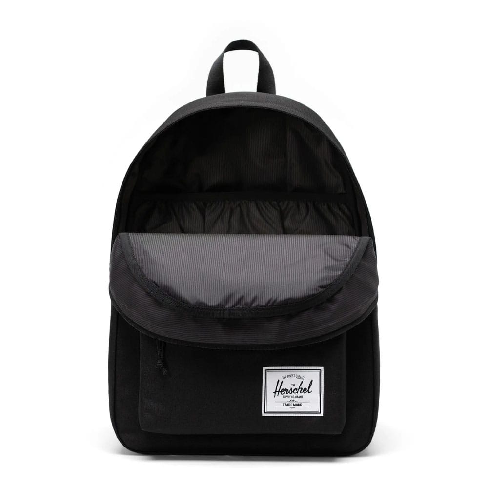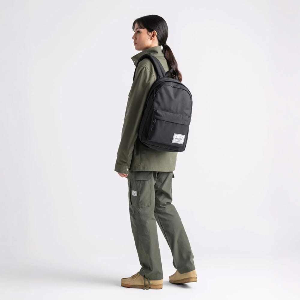 Herschel Classic 26 L vardagsryggsäck är idealisk för både studenter och äventyrare. Den rymmer allt du behöver med ett 15″/16″ laptopfack och fickor för vattenflaska och tillbehör. Tillverkad av 100% återvunnen polyester, är den ett hållbart val för daglig användning. Justerbara, vadderade axelremmar garanterar komfort hela dagen.