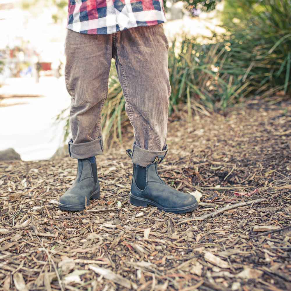 Blundstone 1325 Chelseas är idealiska för aktiva barn som behöver hållbara och bekväma skor. Med rustikt svart vattenavvisande premiumläder, enkel påtagning och formpressad EVA-fotsäng erbjuder dessa stövlar komfort och skydd i alla väder. Passar perfekt för lek och äventyr utomhus, tack vare den lätta och slitstarka polyuretan-yttersulan.