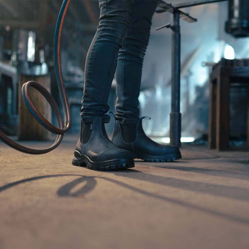 Blundstone 910 är en slitstark arbetskänga med spiktrampsula och stålhätta. Perfekt för dig som behöver skydd och komfort i arbetsmiljön. Kängan är tillverkad i förstklassigt oljebehandlat premiumskinn och har en gummerad tå för extra slitstyrka. Den har även en kraftig resår i båda sidor för enkel av- och påtagning. Yttersulan är slitstark, halksäker och klarar av värme upp till 300 grader. Med Blundstone får du kvalitet och stil i ett som kommer att hålla länge.