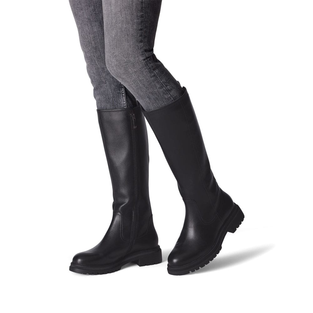 Dessa höga stövlar från Tamaris är ett utmärkt val för dig som söker komfort under hela dagen men också en snygg design. Med en matt finish, 4,5 cm hög blockhäl och en profilerad gummisula är de ideala för både vardag och speciella tillfällen. Den runda tån och praktiska dragkedjan förenklar användningen.