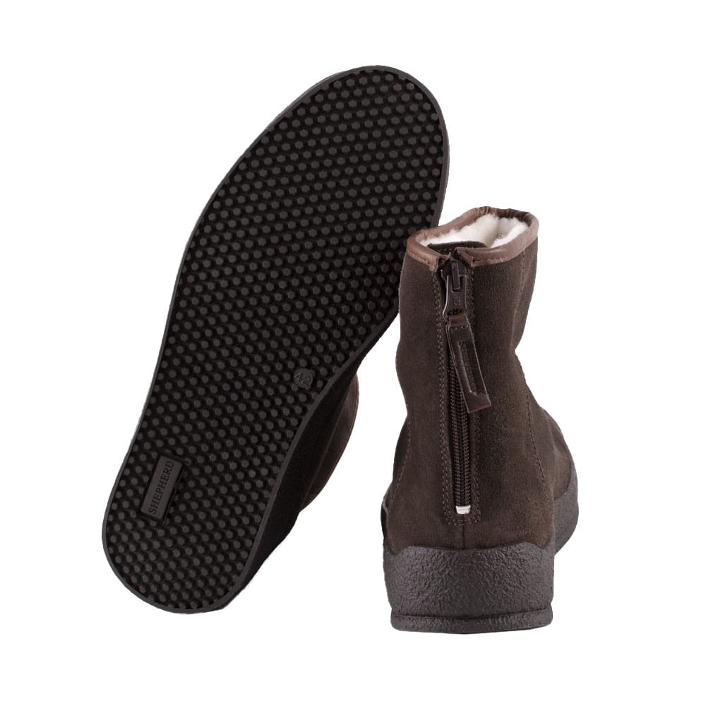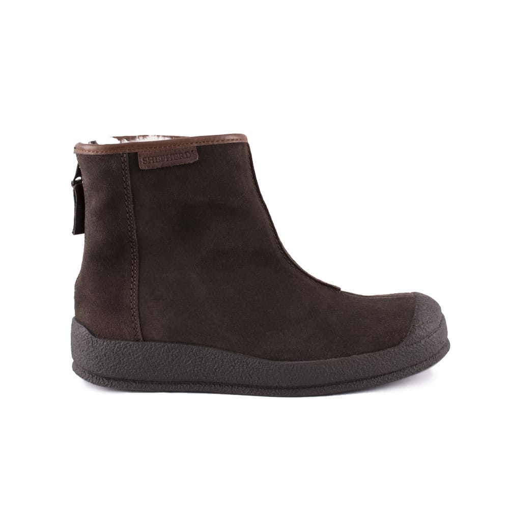 Curlingkängan Sheperd Loke är ankelhög och är gjord av fårläder – ett hållbart material av hög kvalitet. På insidan är det varmt och skönt fårskinn som ger behaglig användning i kallt väder. Baktill sitter en dragkedja som är synlig och på framsidan är det en dekorativ söm – en mycket snygg curlingsko! Shepherd kan upplevas små i storleken, vi rekomenderar att gå upp 1 storlek.