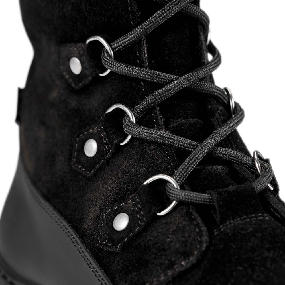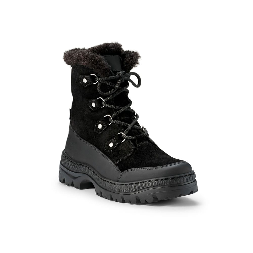 Dessa svarta Ilves Wool Tex Alpi Färnäs vinterkängor passar damer som söker komfort och säkerhet under tuffa vinterförhållanden. Med varm ull- och fuskpälsfoder, vattenavvisande membran och infällbara broddar ger de utmärkt grepp och värme på isiga underlag. Perfekta för promenader i nordiskt klimat.