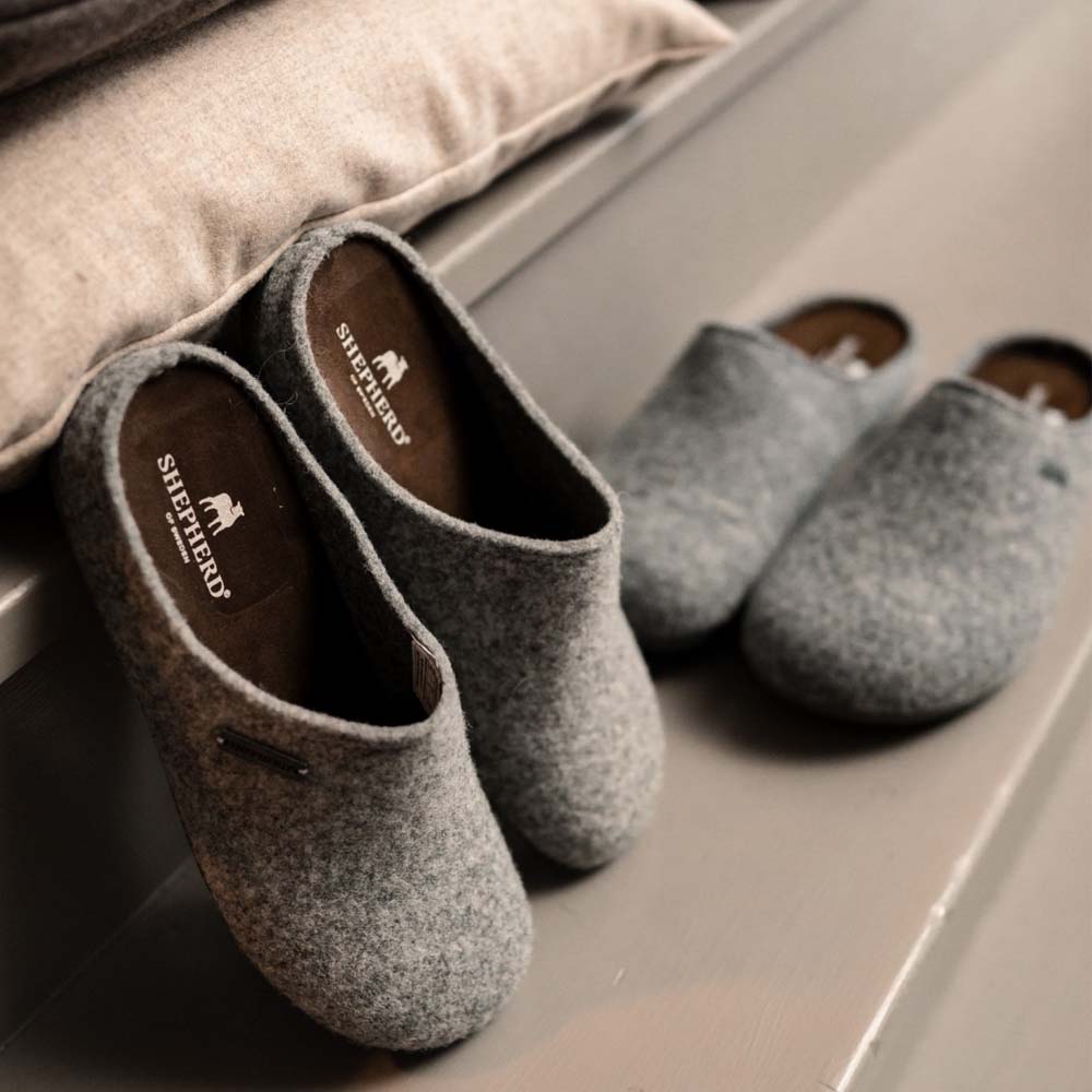 Shepherd Cilla är ett par sköna och varma damtofflor i ren ull i klassisk slip-in-modell. Cilla har mjuk innersula i mocka och yttersula i gummi. Tofflorna är skapta för att passa normal fotform och hålla fötterna varma under hela året. Shepherd kan upplevas små i storleken – Vi rekomenderar att gå upp 1-2 storlekar.