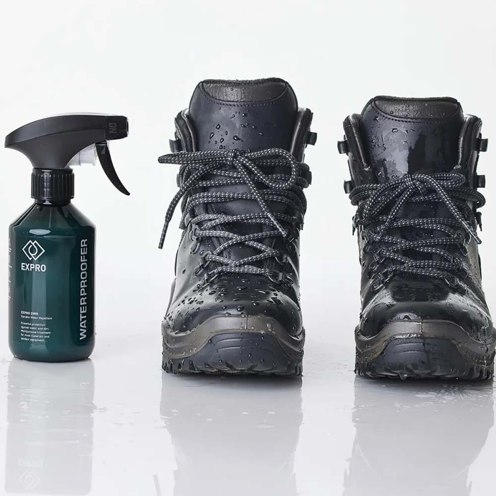 EXPRO Protect Spray är en vattenbaserad impregneringsspray för användare som vill ge skor, jackor, ryggsäckar och möbler långvarigt, beprövat skydd mot vatten, smuts, solljus och fläckar. Bevarar andningsförmåga och känsla, passar även funktions- och membrantyger. Biologiskt nedbrytbar, säker inomhus och OEKO-TEX ECO PASSPORT-certifierad. Förlänger livslängden. Utvecklad och tillverkad i Sverige.