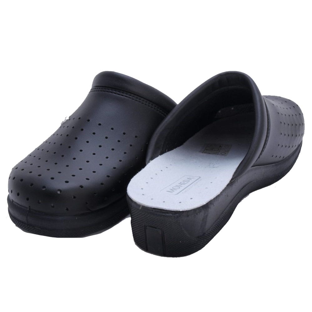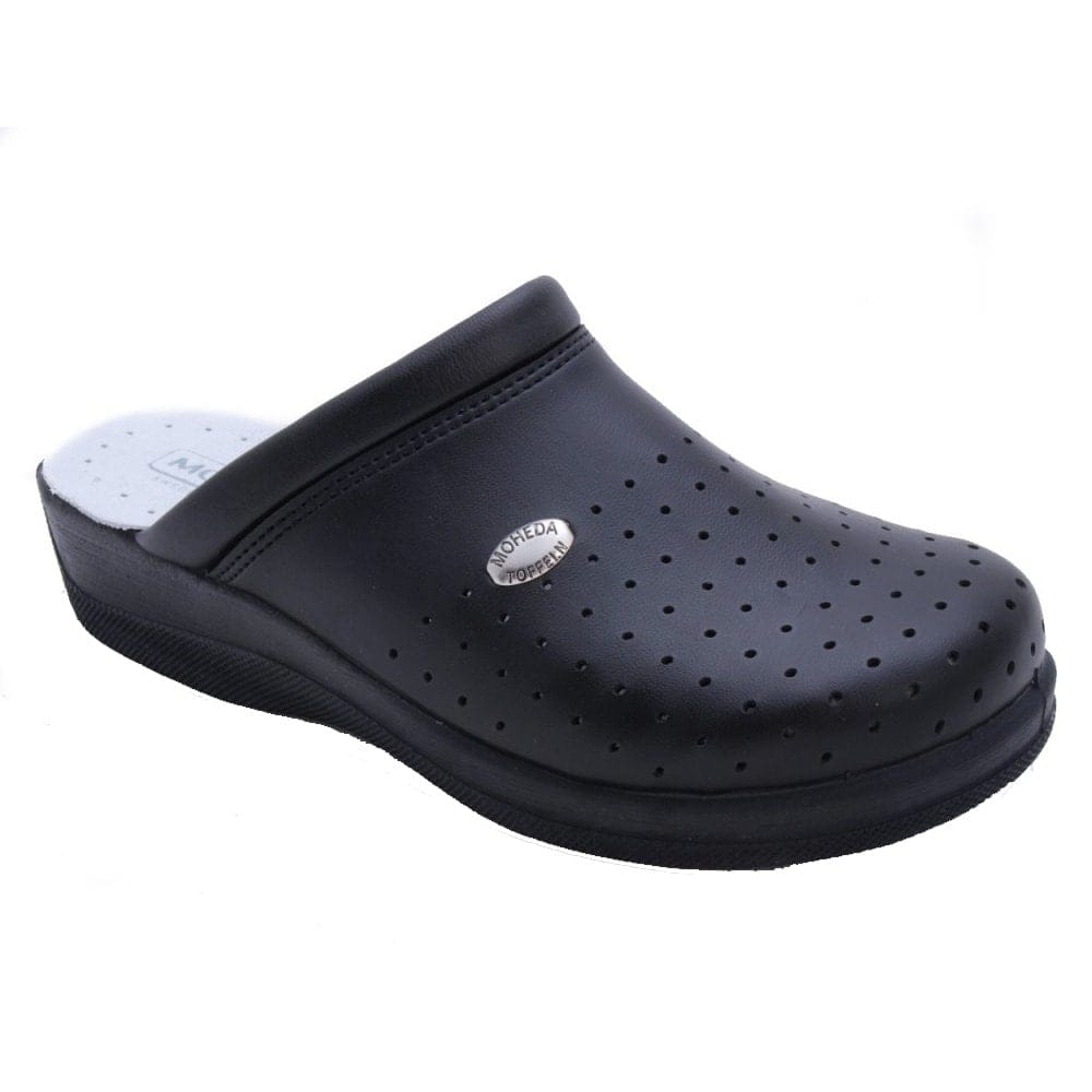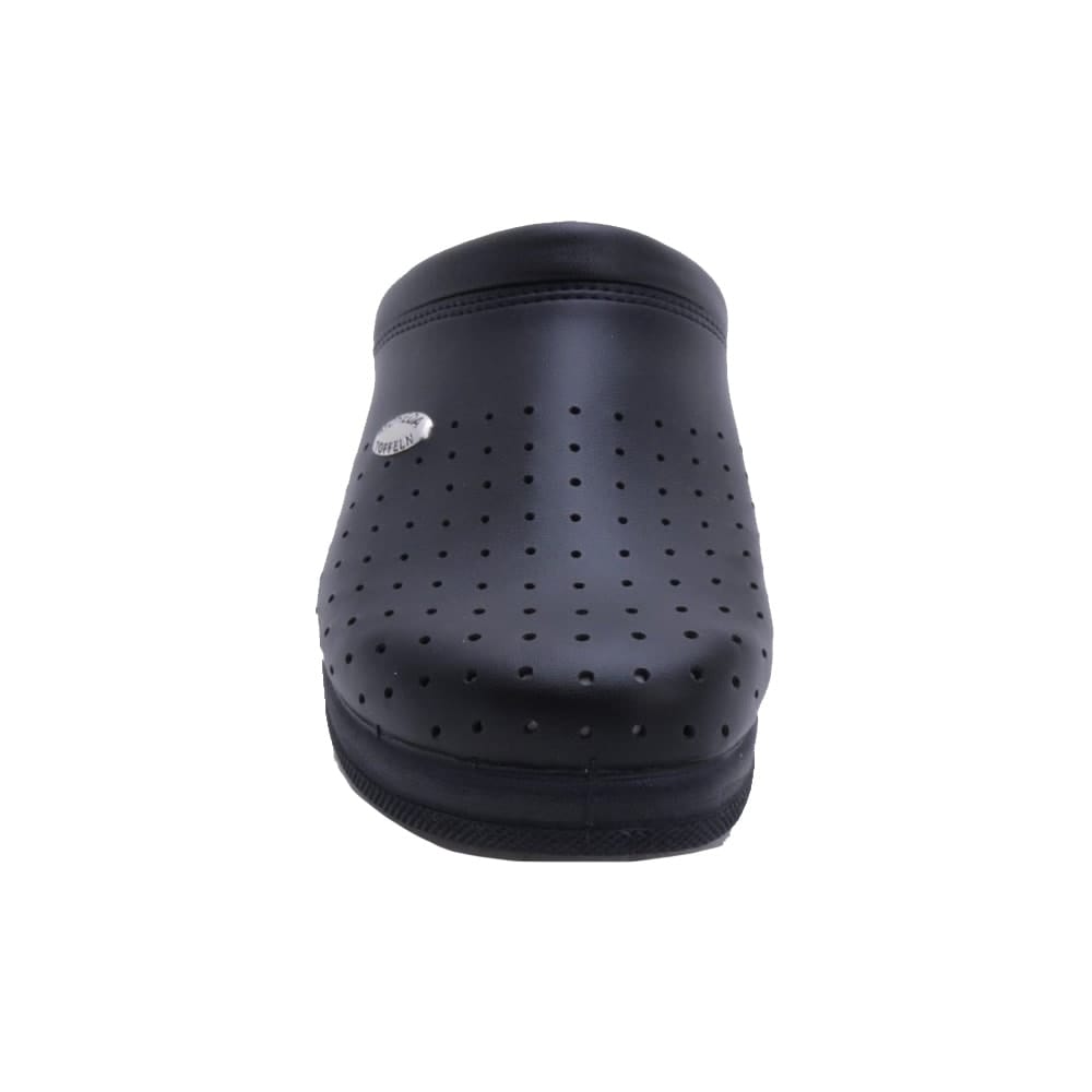 En enkel, flexibel mjuktoffel med perforerat mönster som kan användas både ute och inne. En yttersula i PU och en innersula i äkta läder för bra komfort. Ovandelen är gjord i syntet och har ett perforerat mönster med en snygg och stilren söm över vristen.
