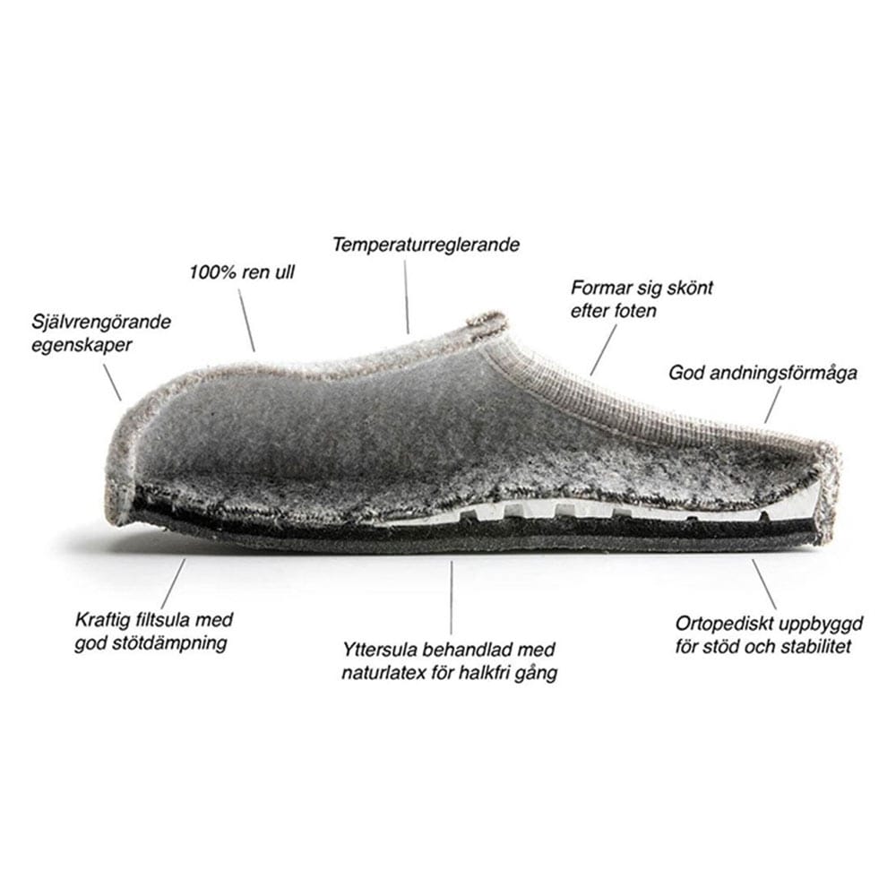 Ulle Legacy tofflor, i 100% naturull, är idealiska för den stilmedvetna som söker komfort året om. Med ortopedisk uppbyggd sula och sömlös ovandel, får du både stöd och mjukhet. Passar både män och kvinnor och med anti-slip funktion är de utmärkta för både hemmet och kontoret. Finns i flera färger.