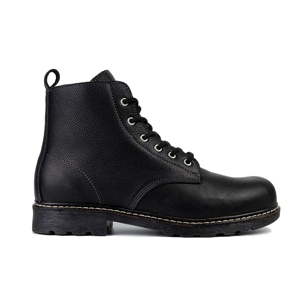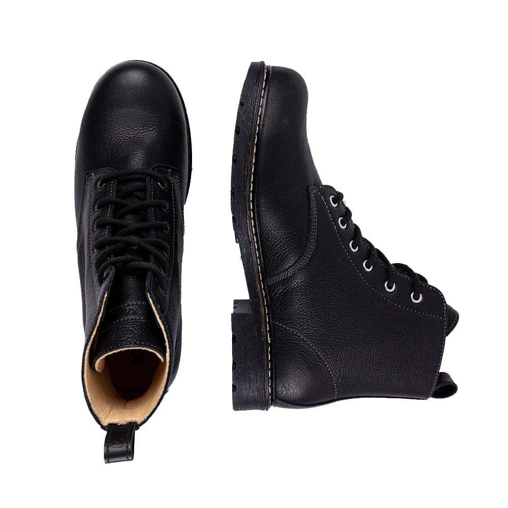 En känga som passar de flesta tillfällen och fötter! Den halvhöga kängan är gjord i miljövänligt och kromfritt läder, den har vattenavvisande egenskaper samtidigt som den andas. Snörningen fram gör att den enkelt justeras för att passa de flesta typer av fötter. På insidan är den fodrad med vegetabilgarvat skinn. Skon levereras med en innersula i skinn som går att ta ut om din fot behöver lite extra plats. Yttersulan är tillverkad i gummi och erbjuder ett bra grepp på de flesta underlag, mellansulan har stötdämpande egenskaper och tillsammans skapar de en bra balans för bästa komfort.