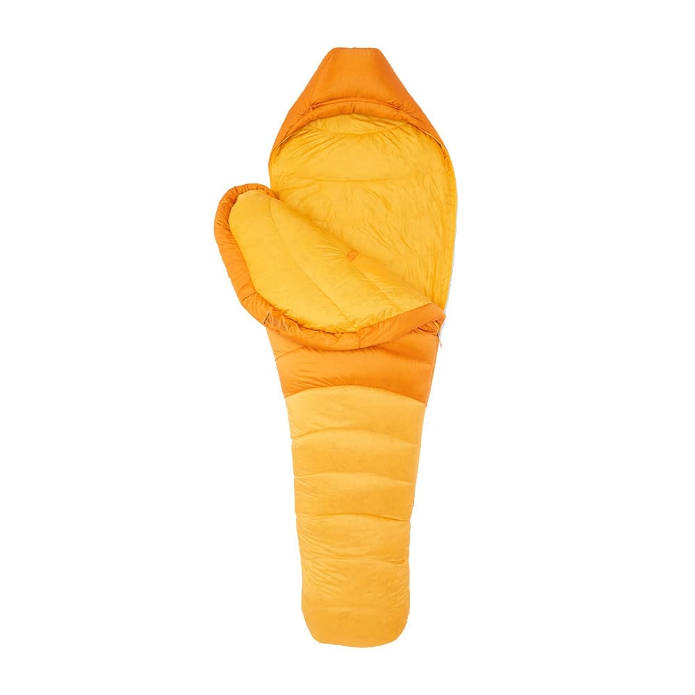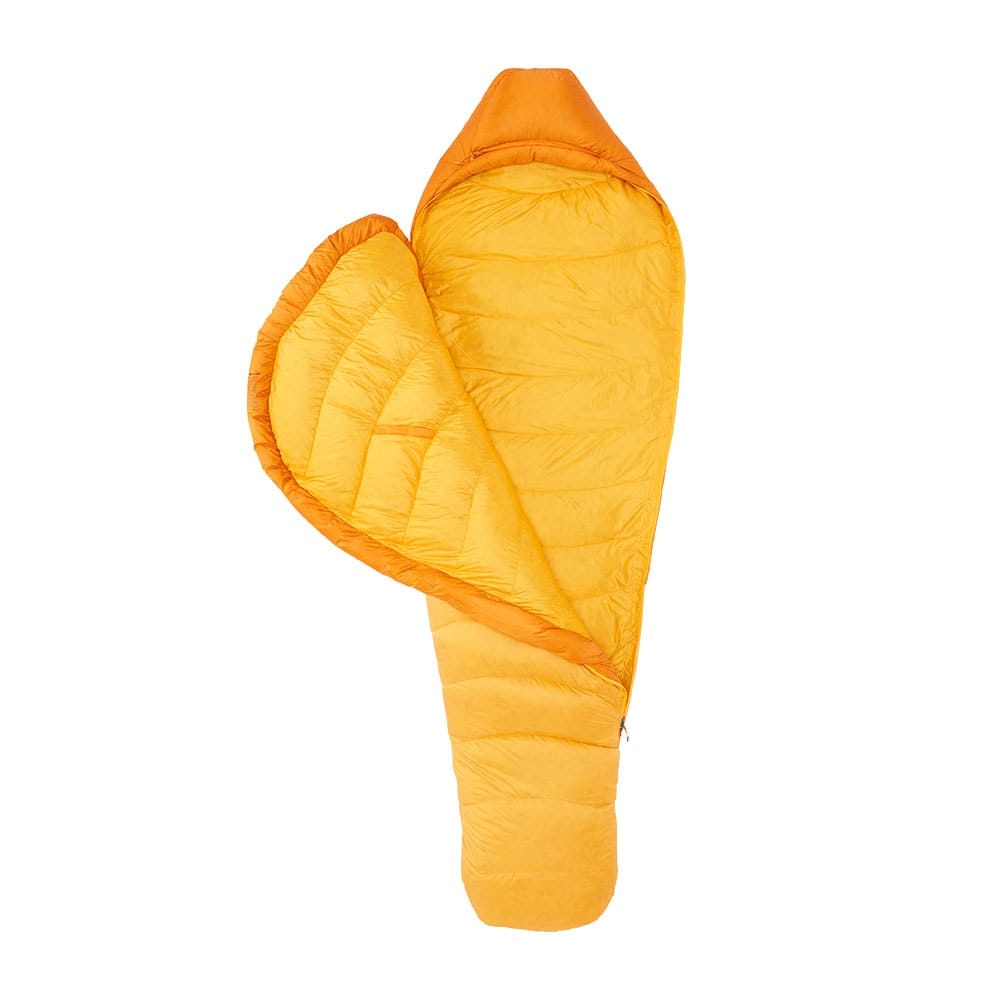 Förutom den högkvalitativa dunfyllningen har Marmot Lithium flera smarta funktioner som förbättrar dess värmeisolering. Här finns till exempel en anatomiskt utformad fotbox som ger dina fötter gott om utrymme utan att belasta fyllningen.
