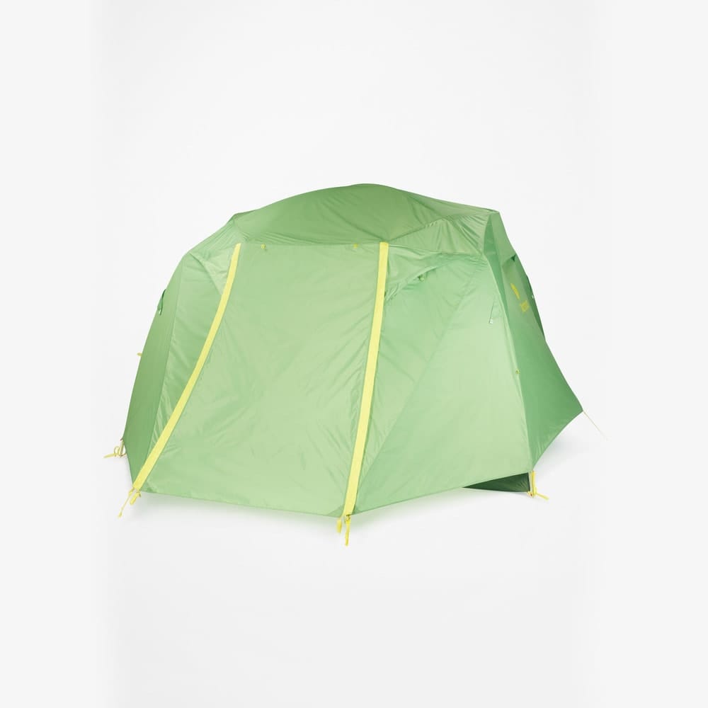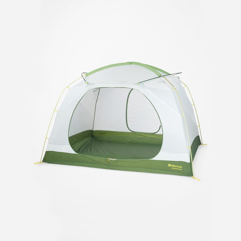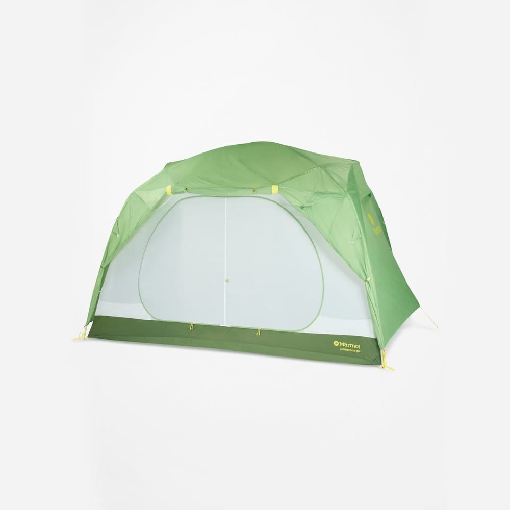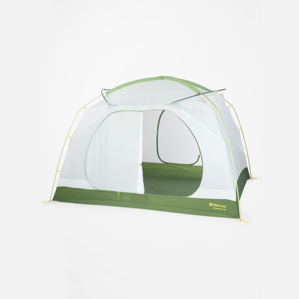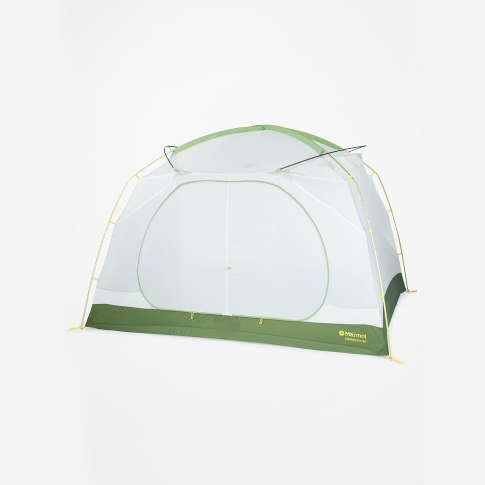 Limestone 6P från Marmot är ett fristående tält som rymmer upp till sex personer utan problem. Den unika konstruktionen med vinklade tältpinnar skapar vertikala väggar, vilket ger sällskapet maximalt med utrymme och en behaglig takhöjd.